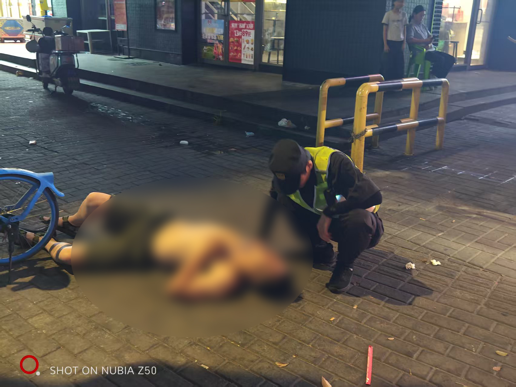 当日凌晨1:00左右,公司员工孙亚锋和徐英浩巡逻至周泰路瑞建路路口时,发现一名男子赤裸着上身躺在地上,便赶紧上前察看。