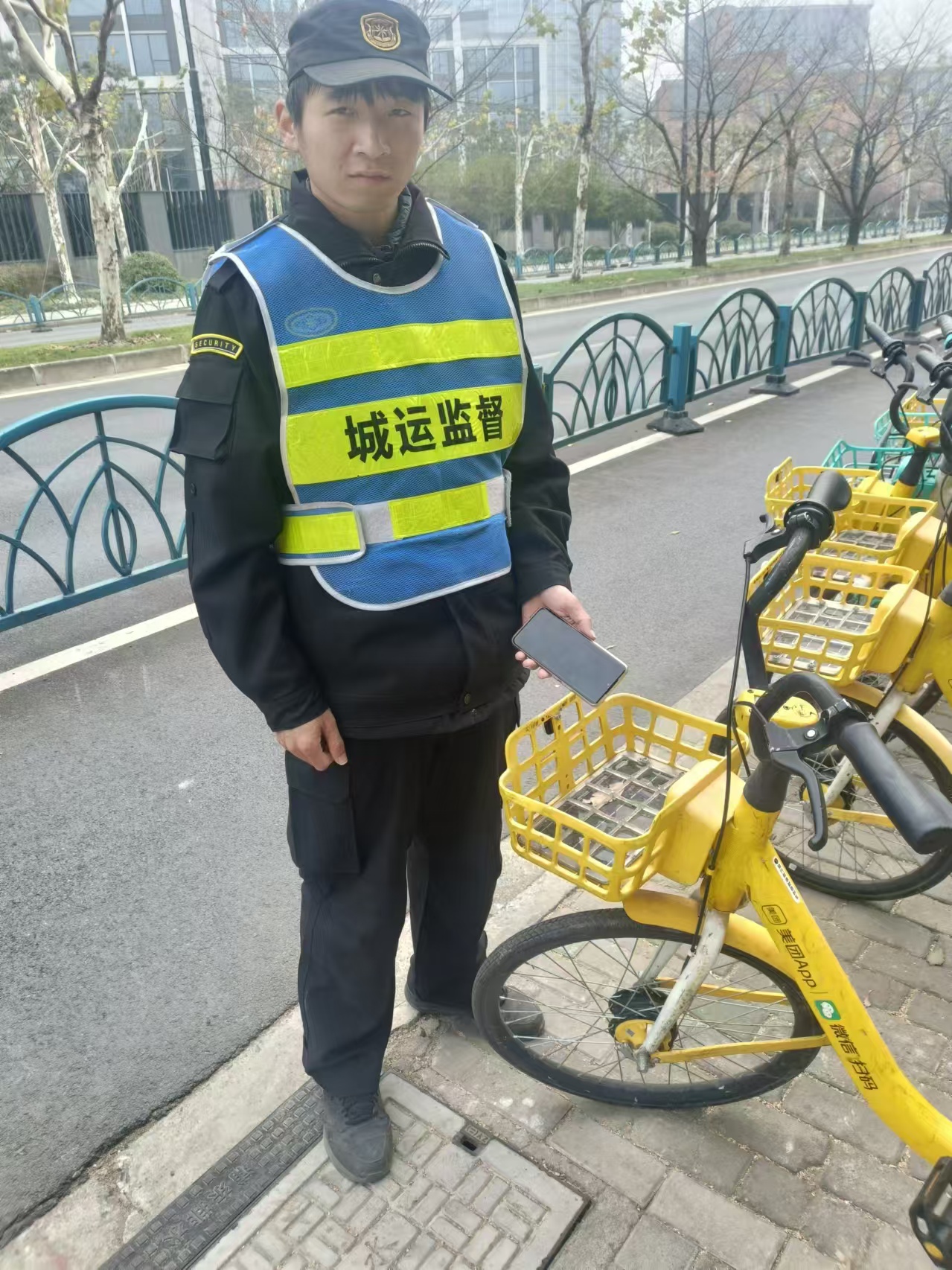 12月20日13:30,宗保公司驻浦东新区南码头路街道城运辅助项目员工刘帅旗在世博大道整理共享单车时,在一辆共享单车的车筐里发现一部Oppo手机。刘帅旗报告班组长后,便在原地等待。