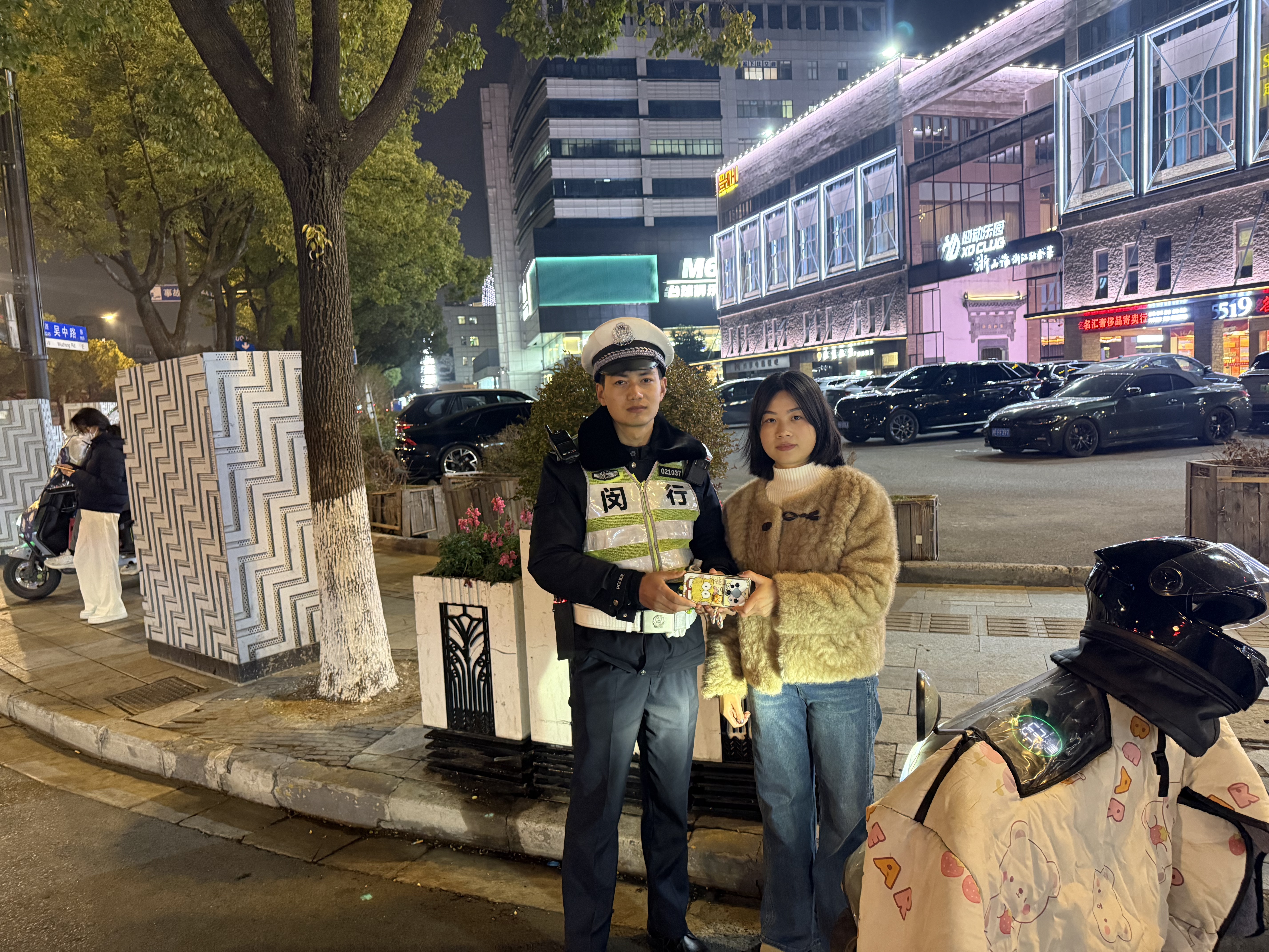 18:40左右,一位身穿棕色外套的女子赶到约定地点,贡去乎东之核实了手机相关信息,确认其是失主后便将手机归还给了她。女子拿着失而复得的手机欣喜不已,再三向贡去乎东之道谢。