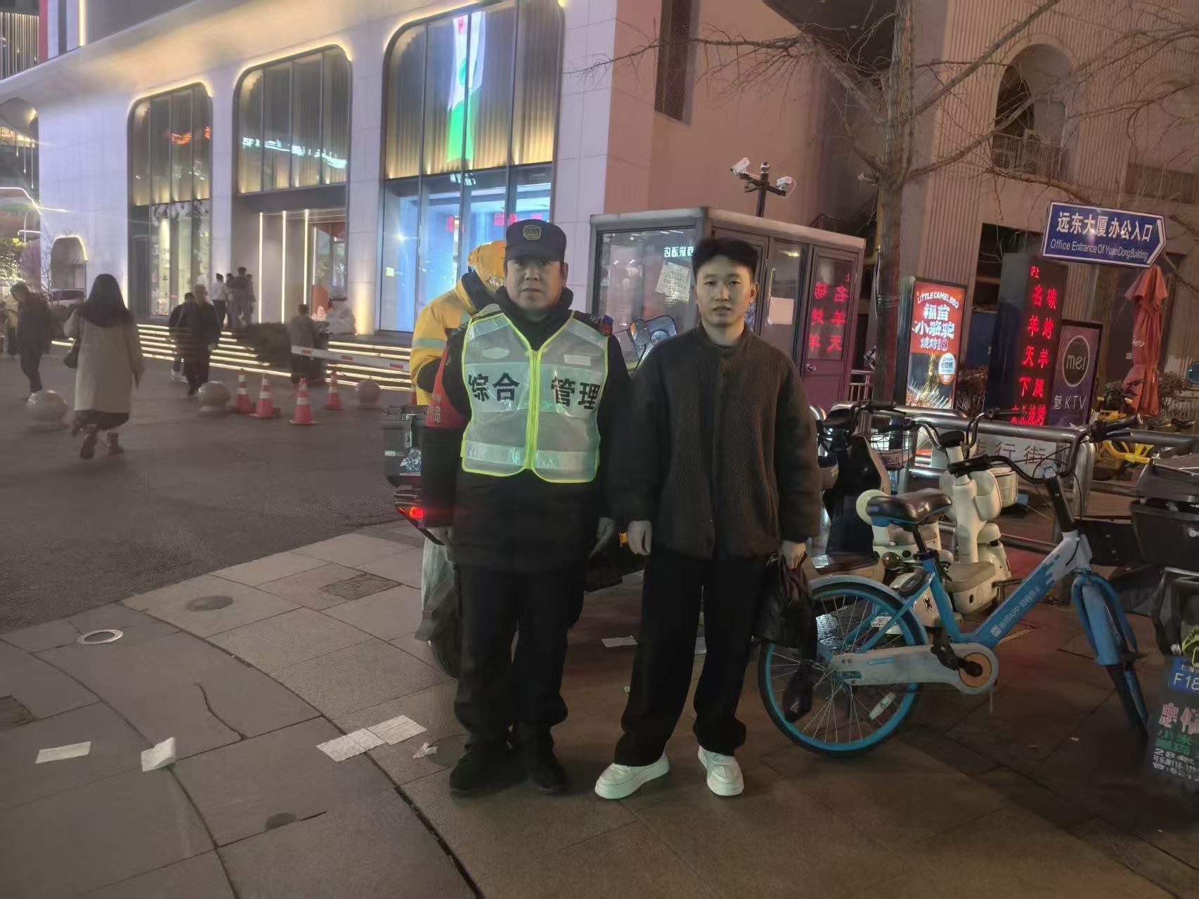 大约过了二十多分钟,一位骑着自行车的大叔赶到现场,盯着地面像在找什么东西,丁健康见状主动上前询问。经现场核验手机密码无误后,两人将手机归还给了大叔。大叔拿到失而复得的手机,竖起拇指连连称赞宗保员工拾金不昧的助人行为。