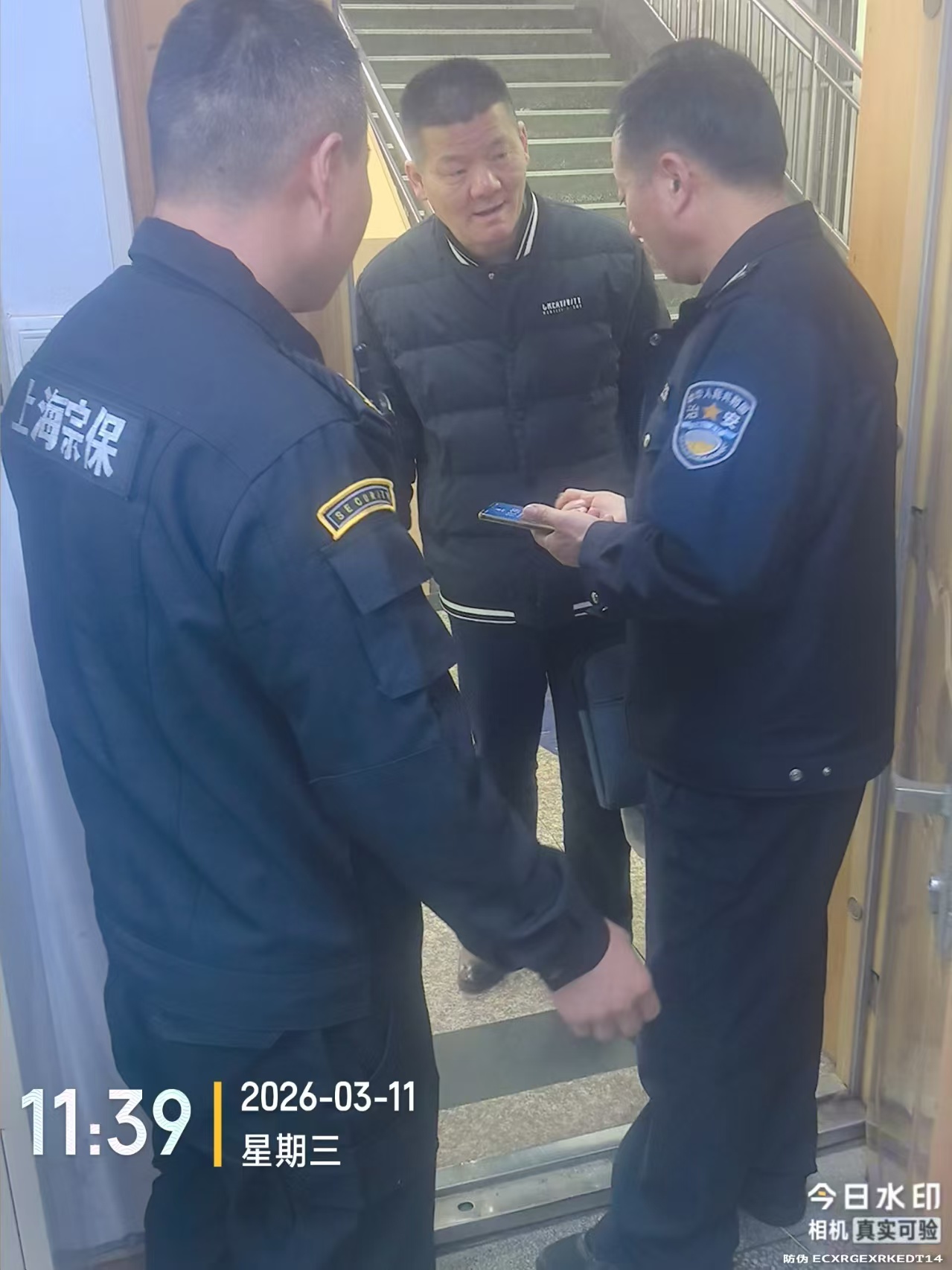 3月11日11:30,宗保公司驻浦东光明中医医院项目员工梁志兵、李浩杰在医院进行日常巡查时捡到一部华为手机。考虑到失主可能会返回寻找,两人决定原地等候,期望能及时将手机归还。