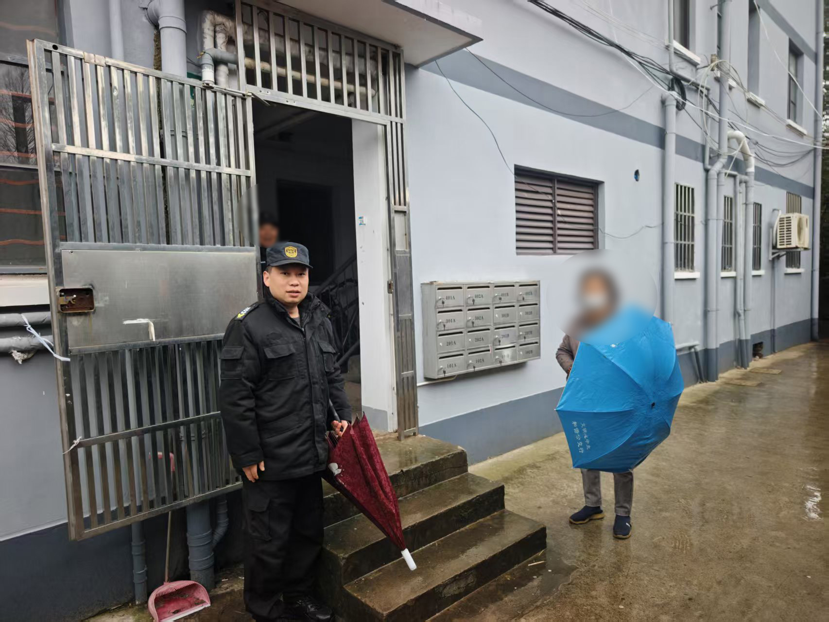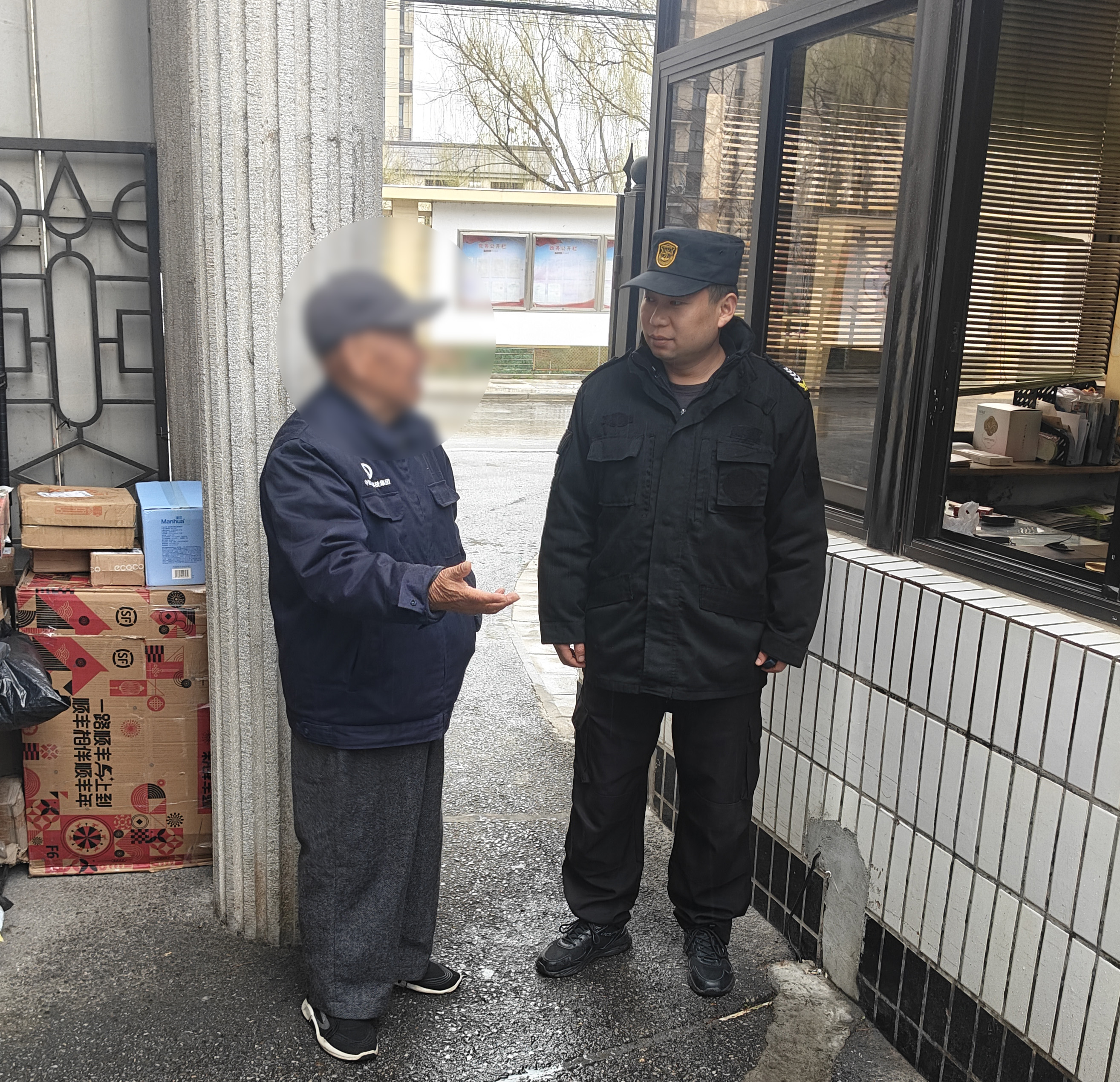 3月1日10:50,宗保公司驻浦东新区书院派出所辅助项目员工陈将在书院镇政府门岗执勤时,发现一位老人神情迷茫,在雨中徘徊。此时尽管下着雨,但老人却未撑伞,行动迟缓,显得十分无助。