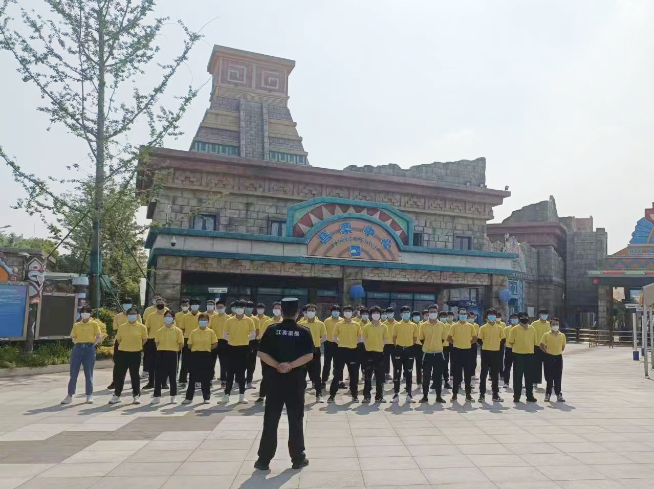 近日,南京华侨城欢乐谷组织新员工进行岗前培训,宗保公司应邀选派4名优秀退役军人员工担任队列训练教官。