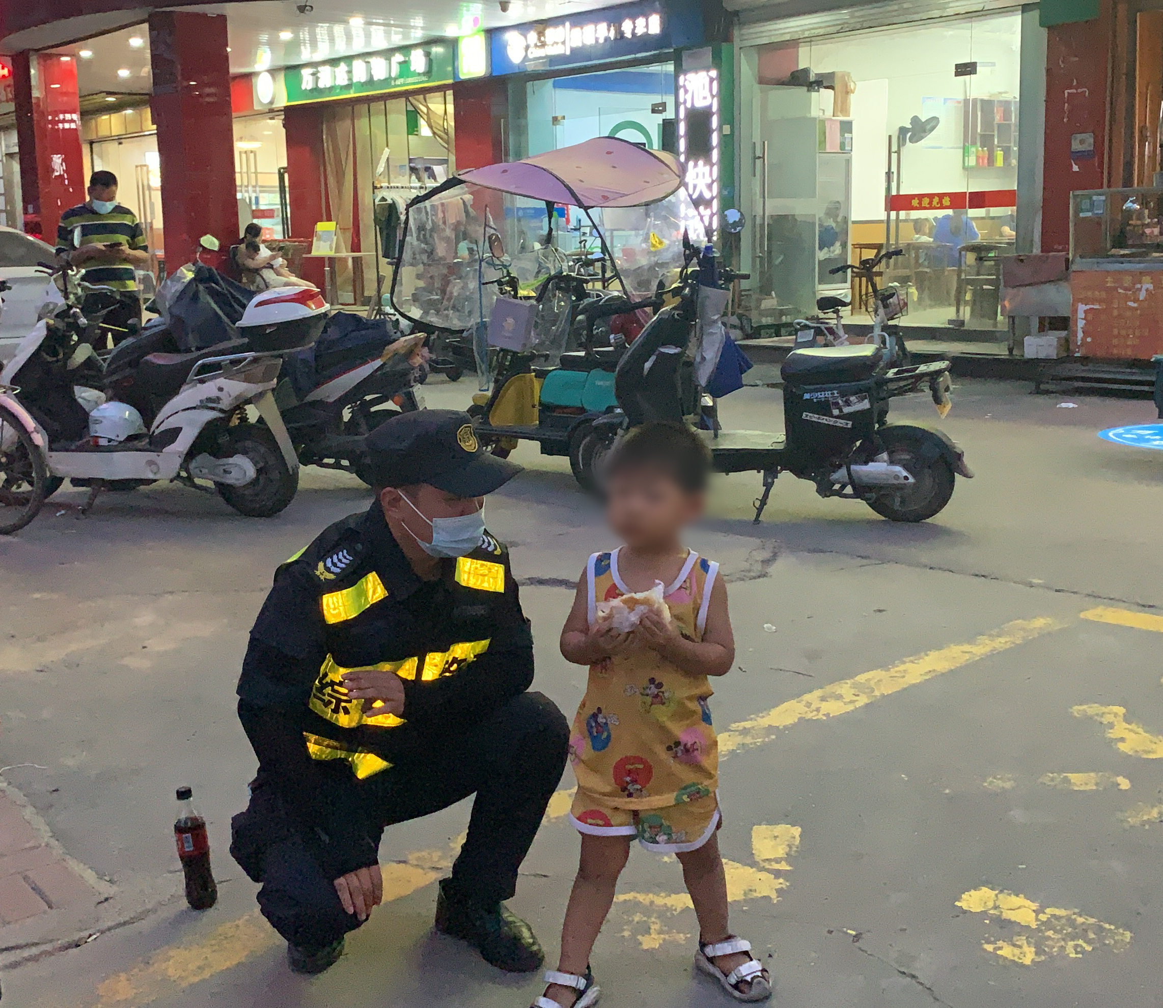 当天18:50,李志杰在庙长桥街和良运街交叉口值勤时,一路人前来求助,称一个小男孩孤单单地站在马路边,身边没有大人陪伴,怀疑其可能是与家人走散了。