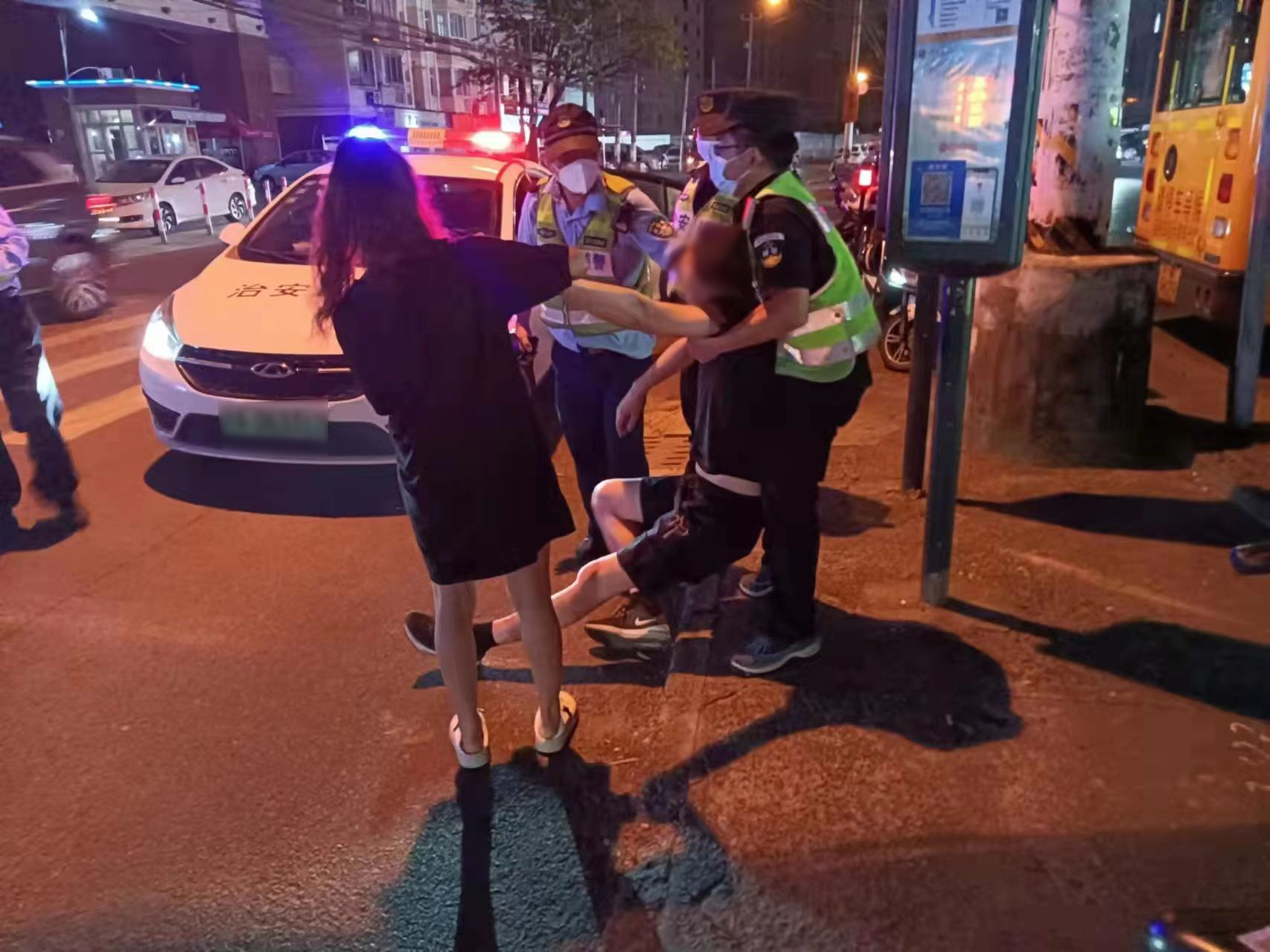 过了许久,醉酒男子酒劲渐渐缓解,说出了自己的住址,但是路程较远,身上也没钱打车,陈虹就将情况上报值班室请求援助。很快,值班室安排的巡逻车赶到现场,陈虹和陈春生把醉酒男子扶上车,由巡逻车送其回家。