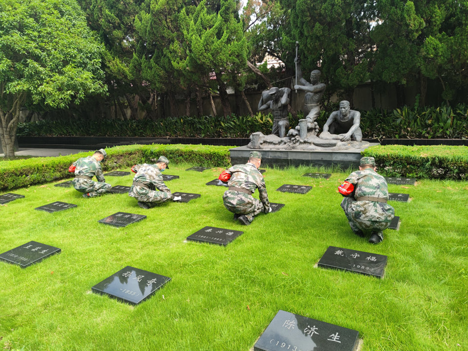 在庆祝中国共产党建党101周年之际,由宗保公司退役军人员工组成的浦东新区烈士纪念设施守护崇敬志愿服务队前往川沙烈士陵园、南汇烈士陵园,开展祭扫守护烈士纪念设施活动。