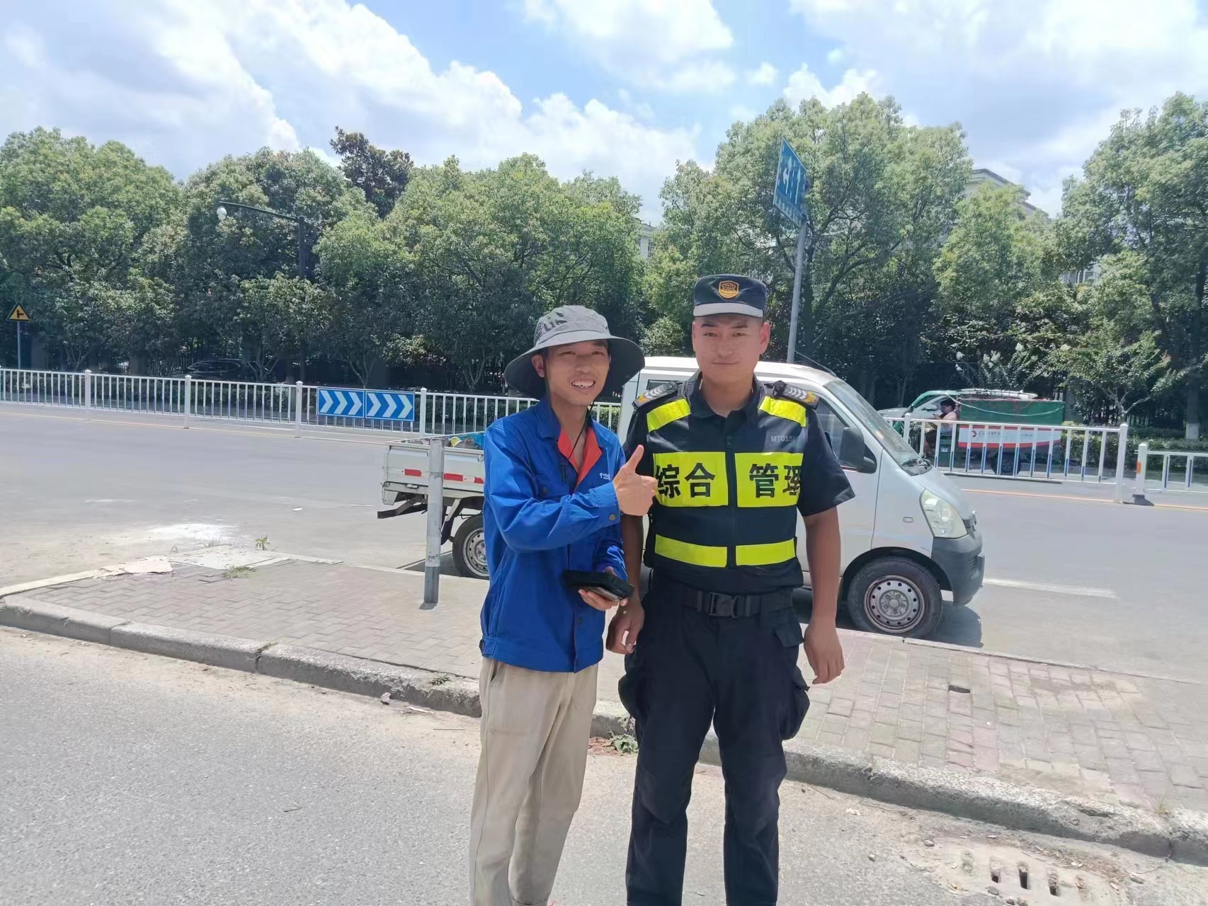 7月1日,浙江民泰驻良渚物流项目队员捡到手机交还失主,受到称赞。