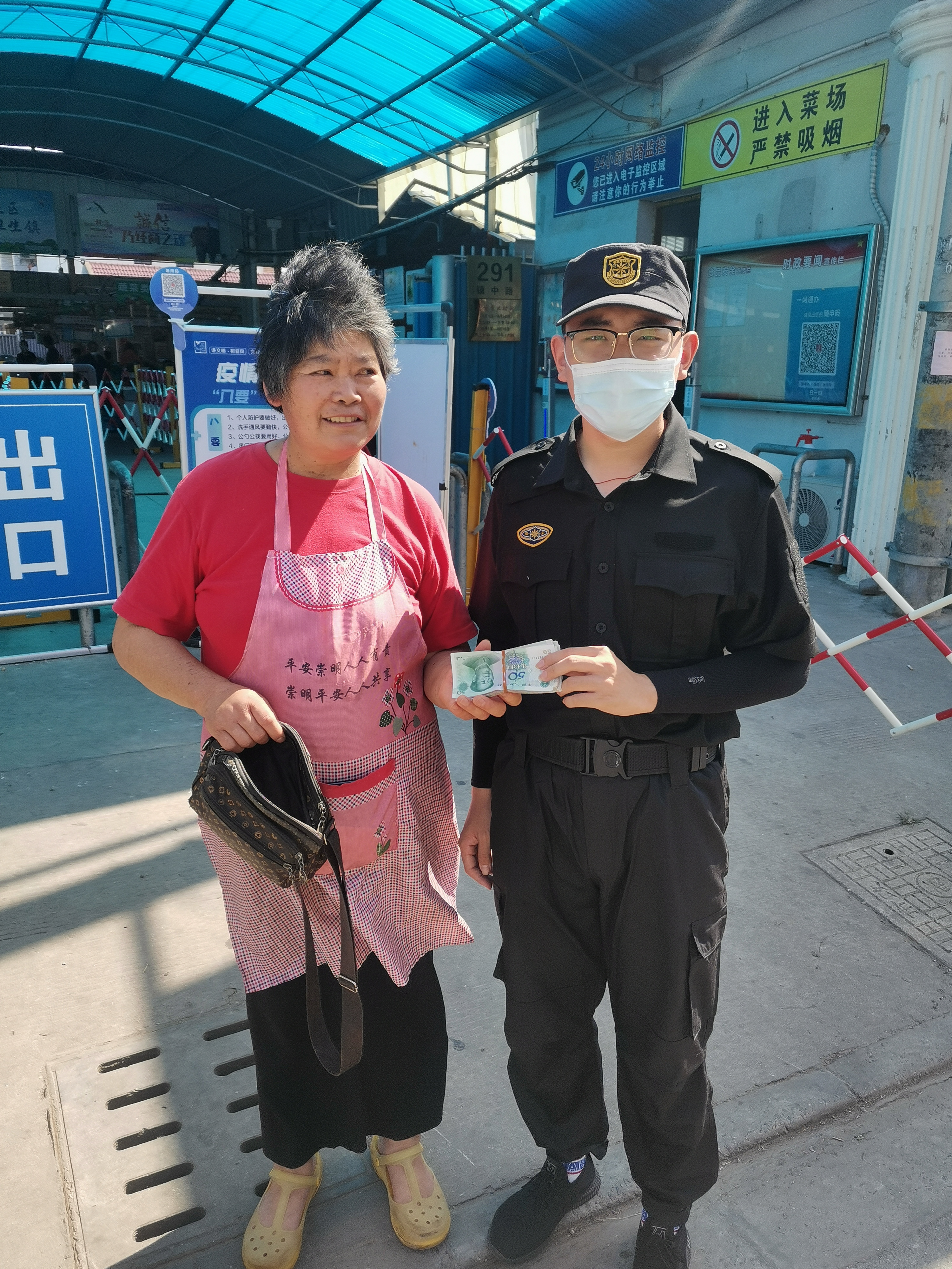 约过了40多分钟,一位老太太神色焦急地赶来,询问吉翔宇有没有在这附近捡到钱。经过监控比对,确认老太太是失主后,吉翔宇将现金如数交还给了她。