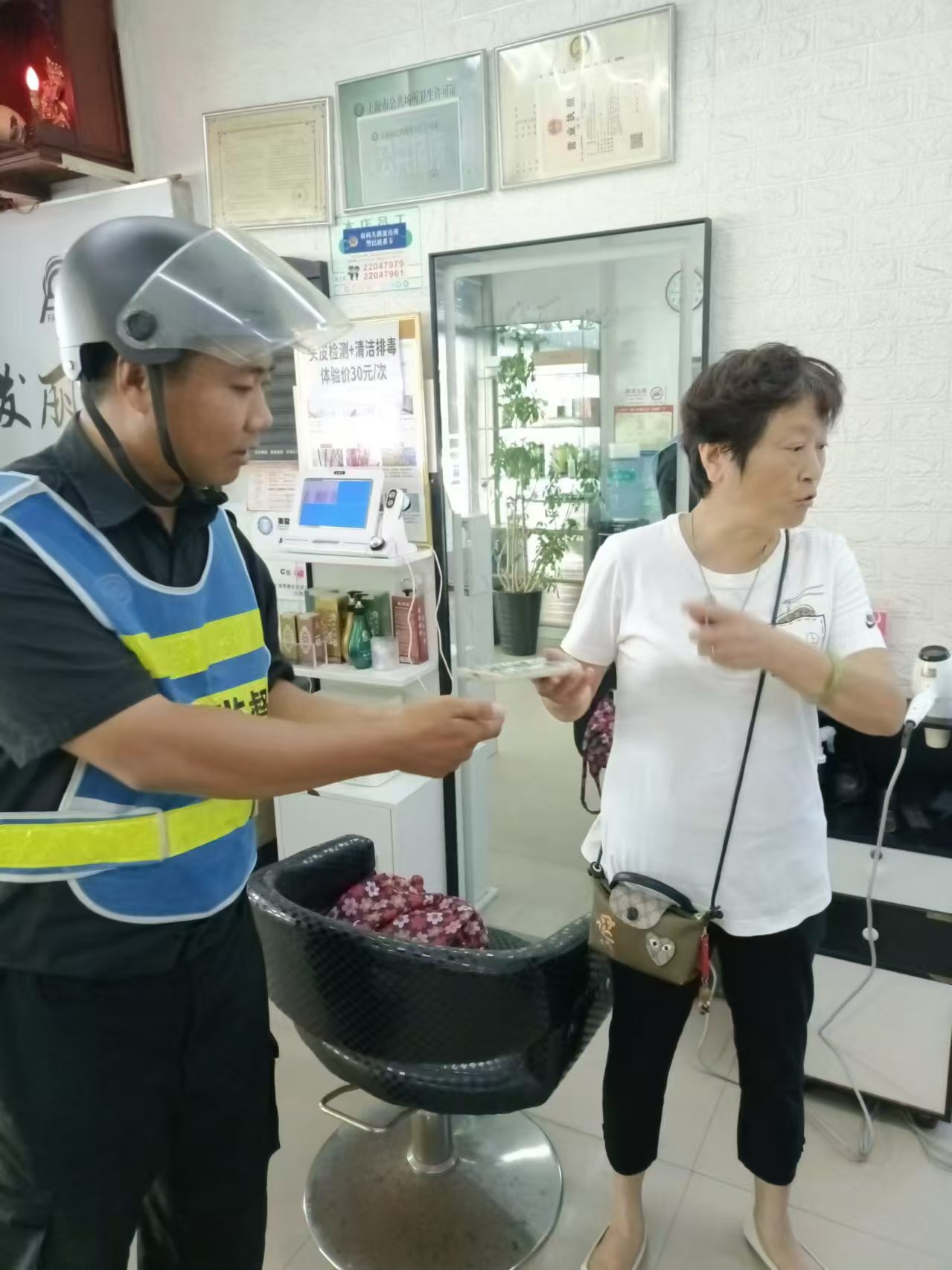 8月13日9:15,宗保公司驻浦东新区南码头网格项目员工徐宝辉在南码头路浦东南路公交车站巡查时,捡到一部Vivo手机。报告项目负责人后,便在原地边巡查边等待失主。(供稿人:秦庆涛)