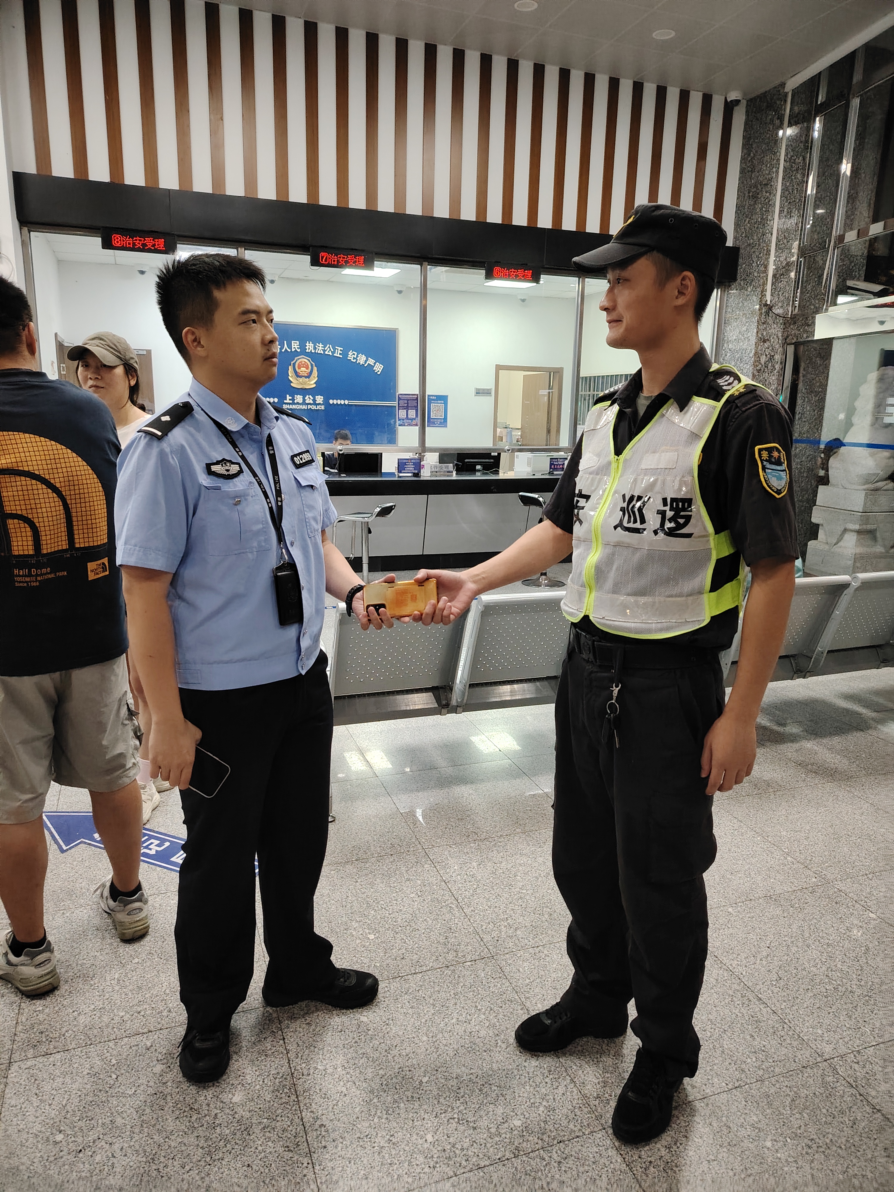 8月14日21:30,宗保公司驻浦东新区洋泾派出所辅助项目员工沈理想和王桃买在崮山路栖山路巡逻时,捡到一部小米k80手机,报告班组长后便在原地巡逻等待。(供稿人:王晓朋)