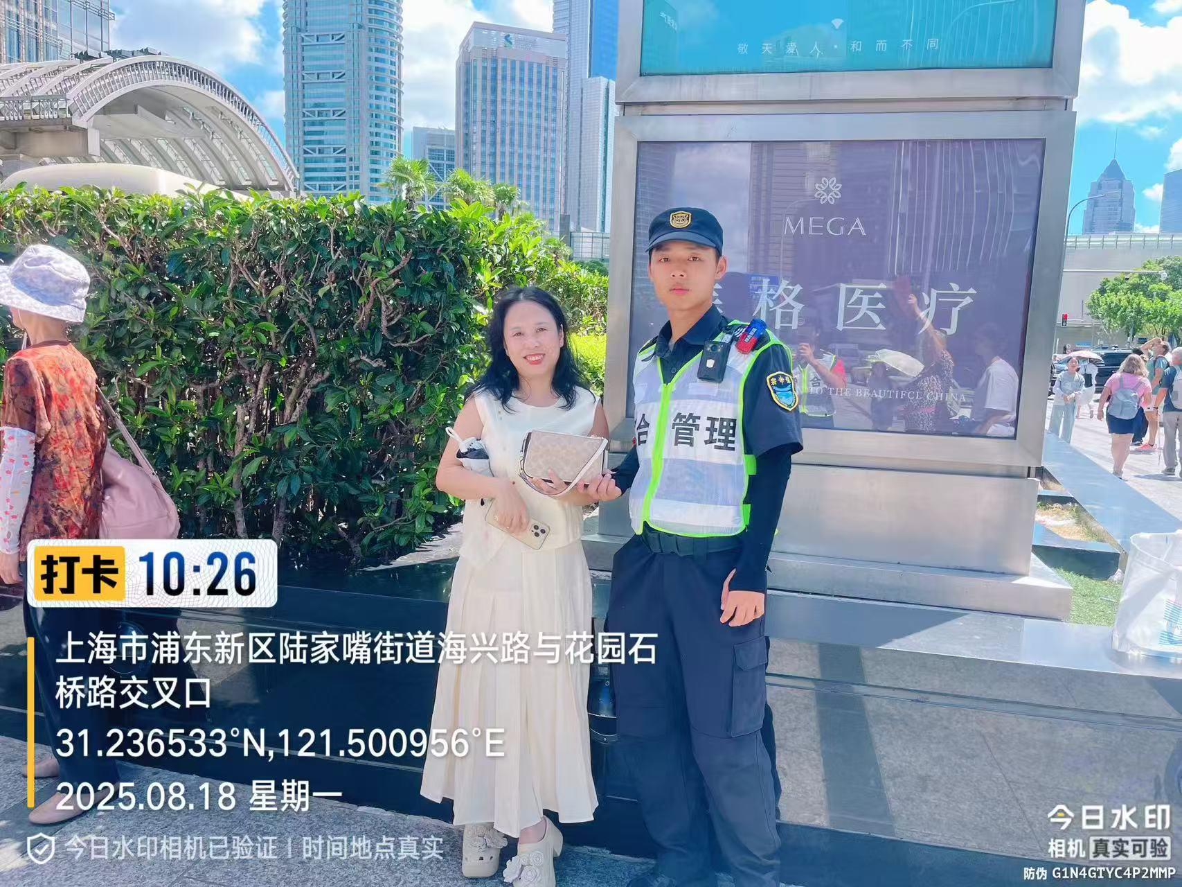 8月18日10:05,宗保公司驻浦东新区陆家嘴综合管理项目员工葛嘉坤在花园石桥路金茂大厦4号门附近执勤时,捡到一个挎包,内有2000元现金和2本护照。(供稿人:麻海涛)