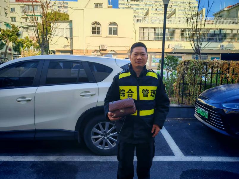 12月18日6:45,宗保公司驻浦东新区陆家嘴社区市容项目员工夏国望在乳山路光辉小区整理共享单车时,在共享单车车筐里发现一个女士挎包,内有两张身份证、多张银行卡和1700元现金等物品。考虑到失主丢了钱物可能会返回寻找,夏国望就待在原地等候失主。