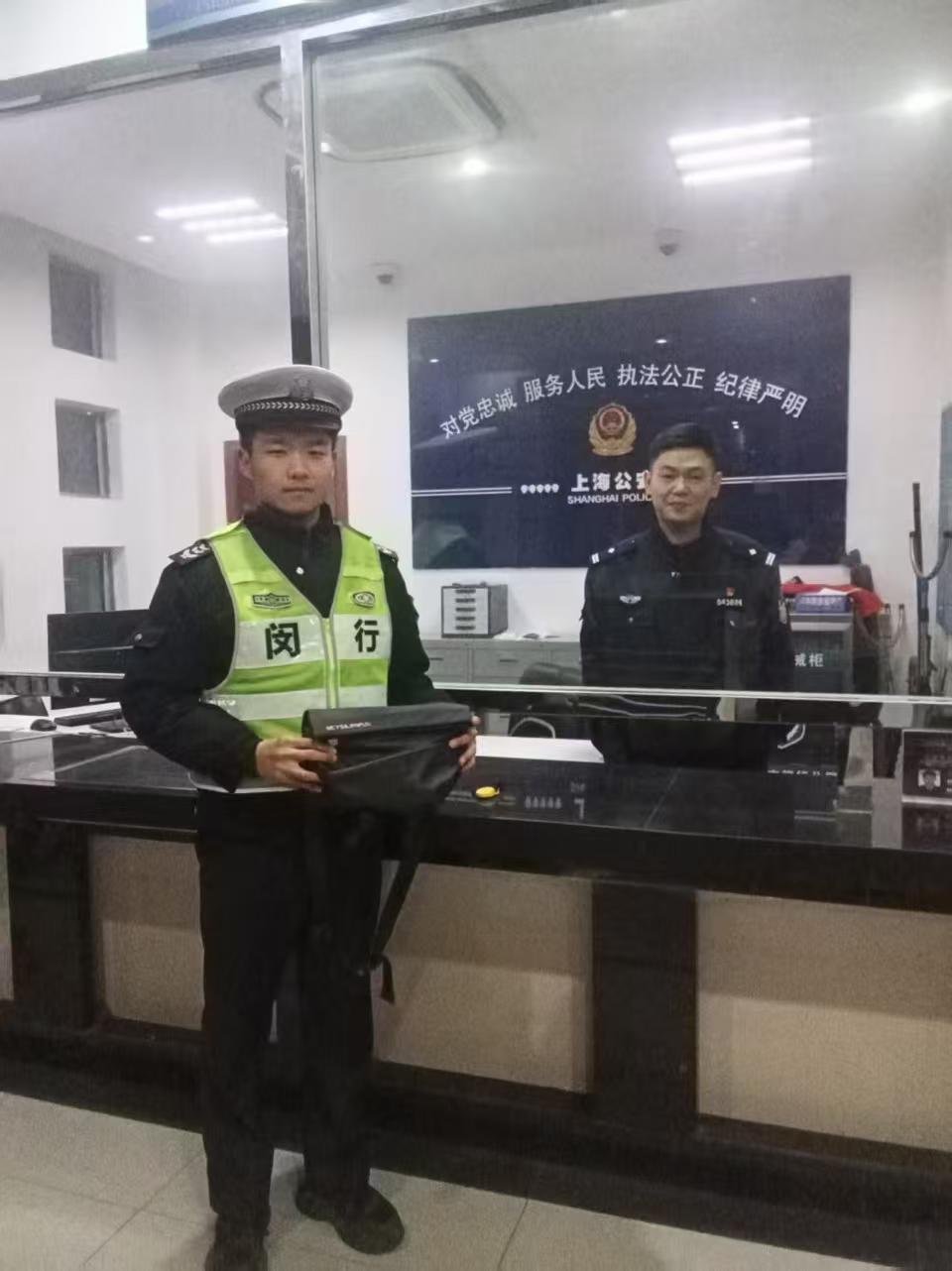 宗保公司驻闵行区莘庄工业区项目员工捡到黑色挎包上交民警
