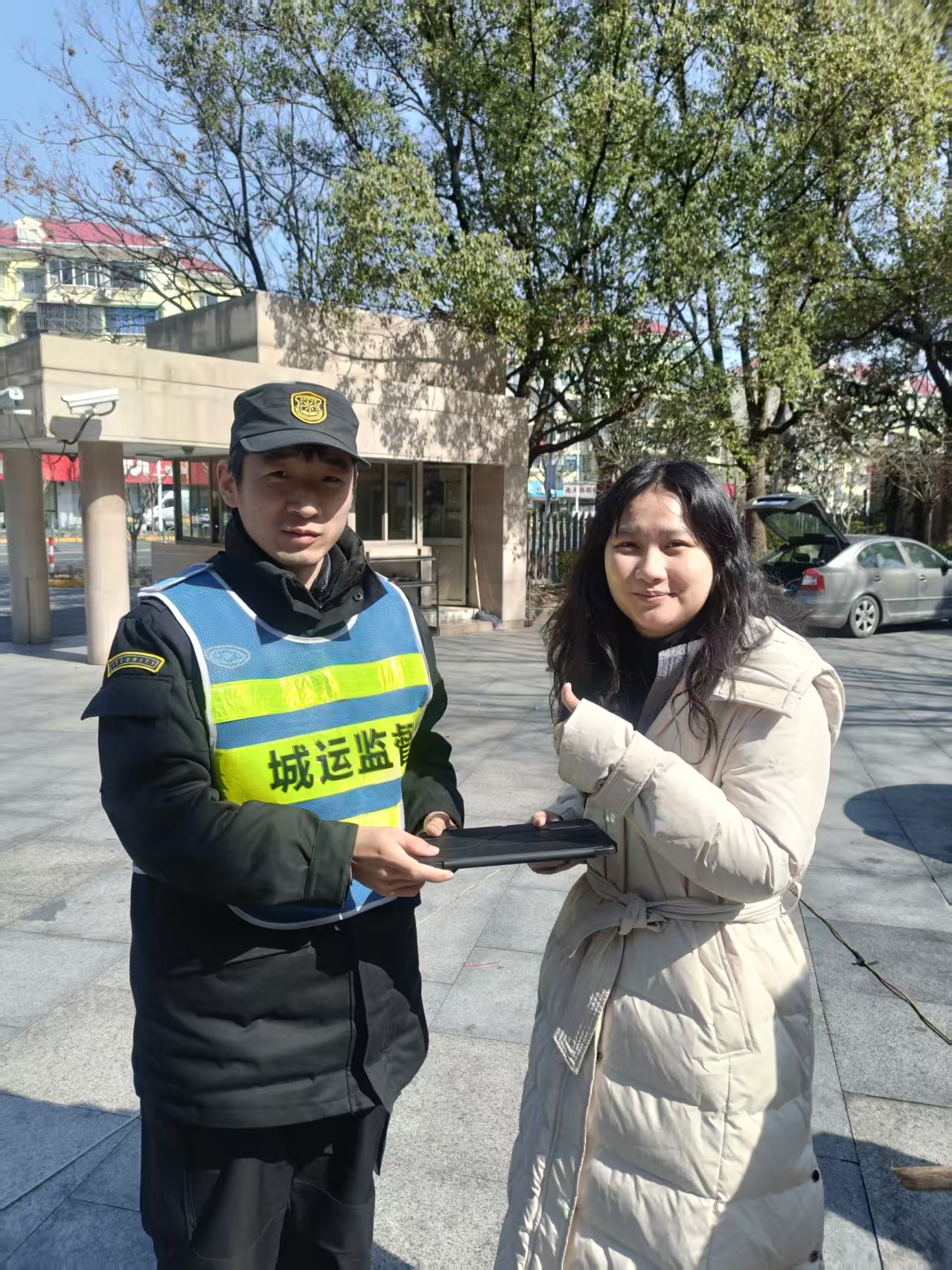 3月14日9:20,宗保公司驻浦东南码头路街道城运辅助项目员工刘帅旗,在东方路3447号附近整理共享单车时,在一辆共享单车车筐内发现一台苹果iPad平板电脑。考虑到失主遗失贵重物品后可能会返回寻找,刘帅旗便决定在原地边执勤边等待。